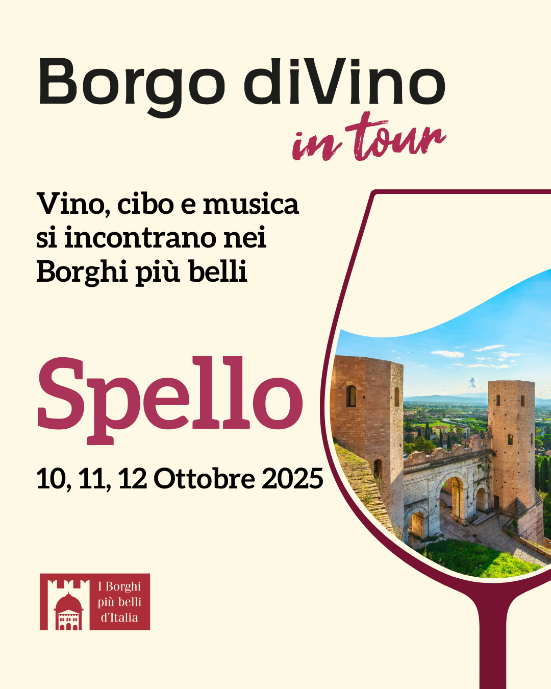 Spello ospiterà per il quarto anno consecutivo Borgo diVino in tour, ciclo di eventi dedicati alla degustazione di centinaia di etichette locali e nazionali, accompagnate da specialità gastronomiche e musica dal vivo