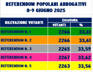 SI VOTA IN DUE GIORNATE: DOMENICA 8 GIUGNO 2025 dalle 7 alle 23 e LUNEDI’ 9 GIUGNO dalle 7 alle 15.