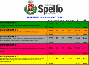 La Commissione elettorale comunale ha provveduto in data 14 maggio 2025 alla nomina dei seguenti scrutatori suddivisi per le 9 sezioni del Comune di Spello: